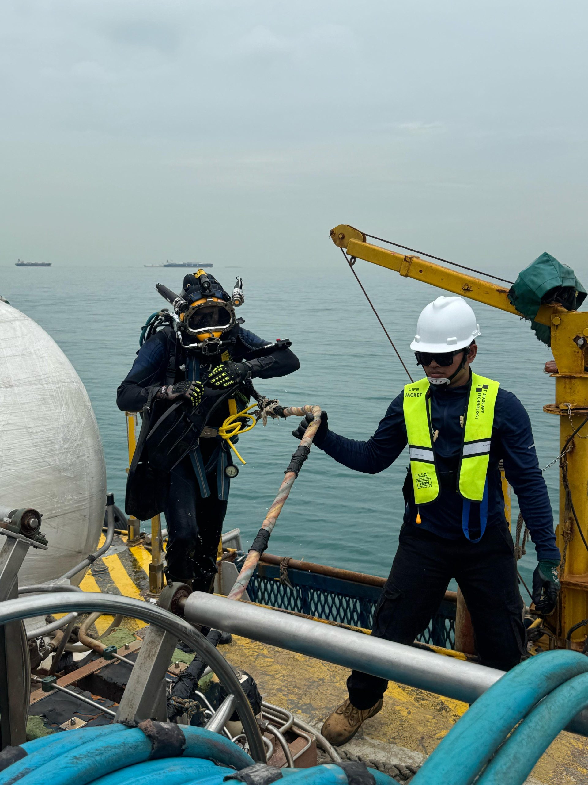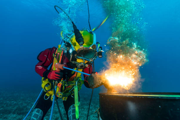 SAINT-MANDRIER-SUR-MER, VAR, FRANCE – APRIL 24: At a depth of 20 metres, a student diver is performing cutting exercises on April 24, 2018 in Saint-Mandrier-Sur-Mer, France. In the south of France, in Saint-Mandrier-sur-Mer, the National Scaphanders School trains about a hundred professional divers a year, a rigorous education for a high-risk profession. (Photo by Alexis Rosenfeld/Getty Images)